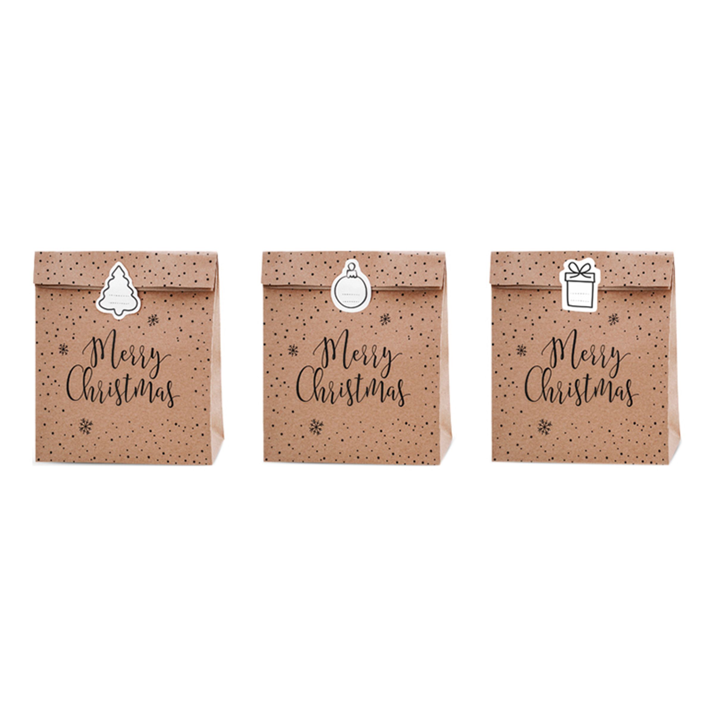 Presentpåsar Merry Christmas levereras som ett 3-pack och kommer samtliga i en härlig juldesign. Varje påse mäter 25 x 11 x 27 cm stor.