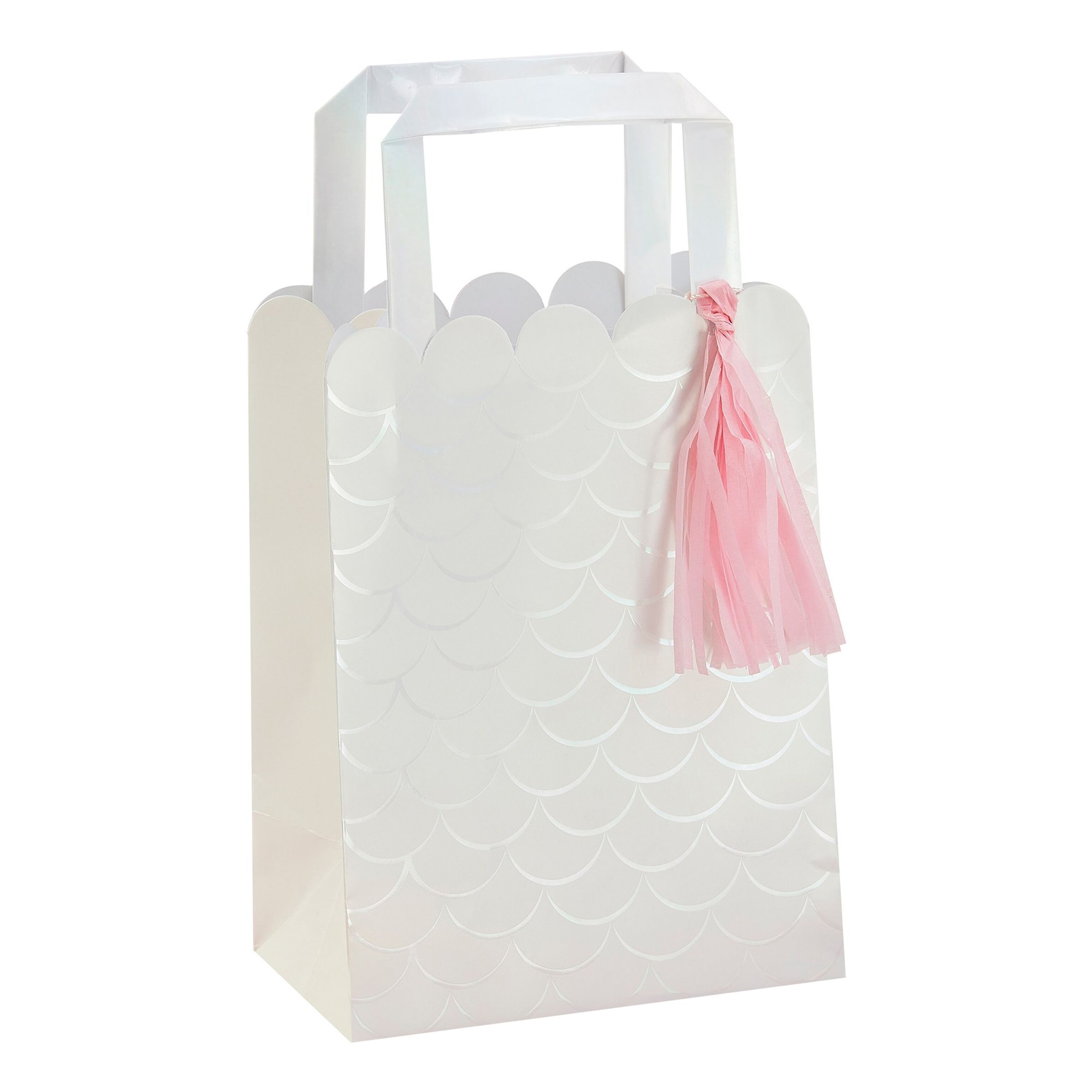 Presentpåsar Snäckskal innehåller 5 stycken eleganta påsar som samtliga mäter 20 x 15 cm och är tillverkade av papper. Medföljer gör också tassels som gör påsarna ännu snyggare!