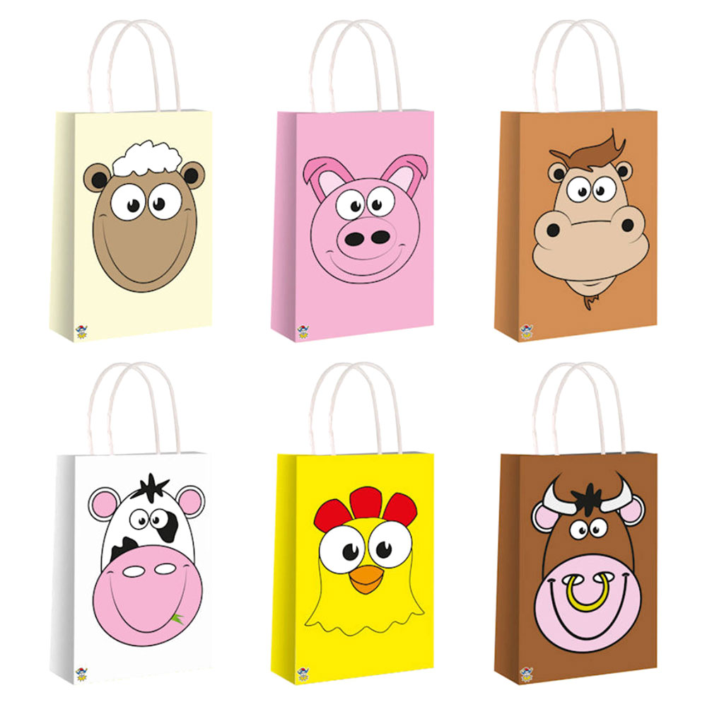 Presentpåse Bondgårdsdjur omfattar en presentpåse i papp med djurmotiv. Påsen är ca 21 cm hög, 14 cm bred samt 7 cm djup och finns med sex olika djurmotiv. Vilket motiv du får slumpas.