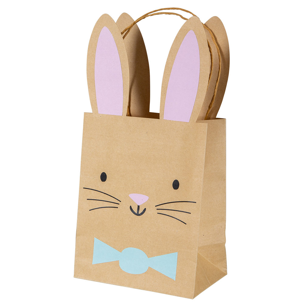 Presentpåse Hare omfattar en brun presentpåse med en söt hare och uppstickande kaninöron. Påsen är i papp och är ca 15 cm hög, 12 cm bred samt 7,5 cm djup.