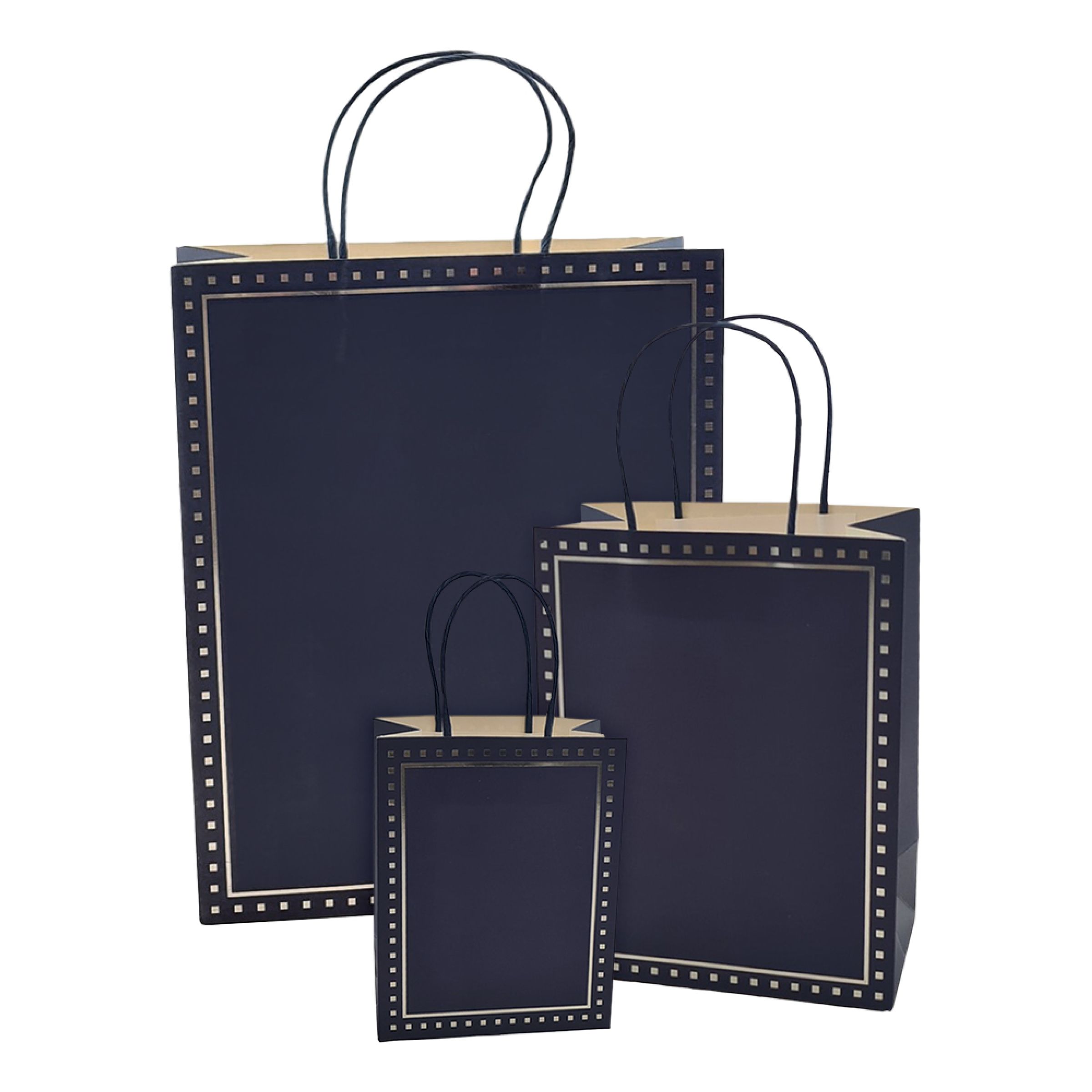 Presentpåse Nobel Mörkblå är en presentpåse som finns i tre olika storlekar. Presentpåsen går i färgen blått med silverdetaljer. Påsen har ett svart bärhandtag och är perfekt att använda till julklappar, födelsedagspresenter eller till gå-bort-presenten.