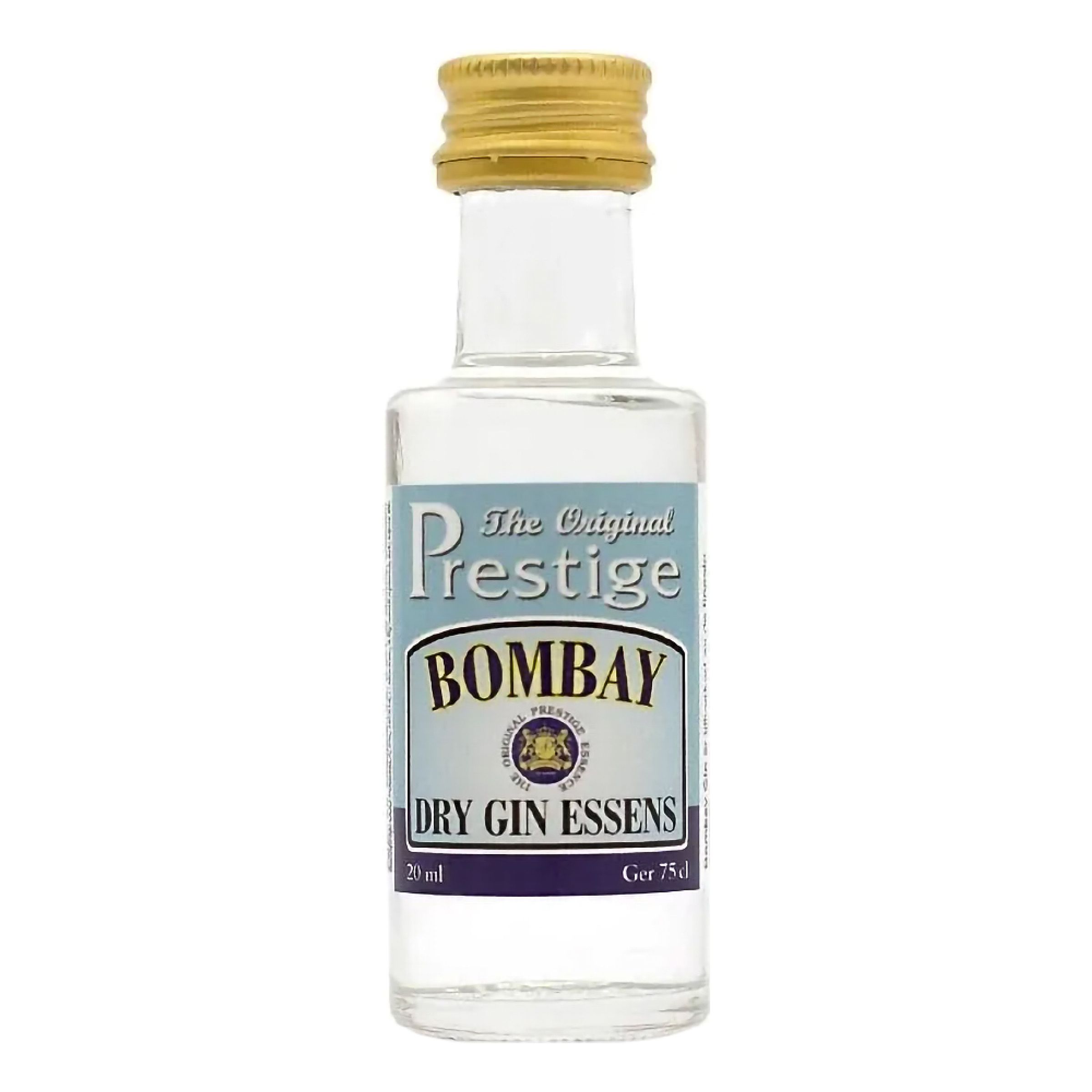 Prestige Bombay Dry Gin Essens säljs i flaska om 20 ml, vilket räcker till 75 cl brännvin.
