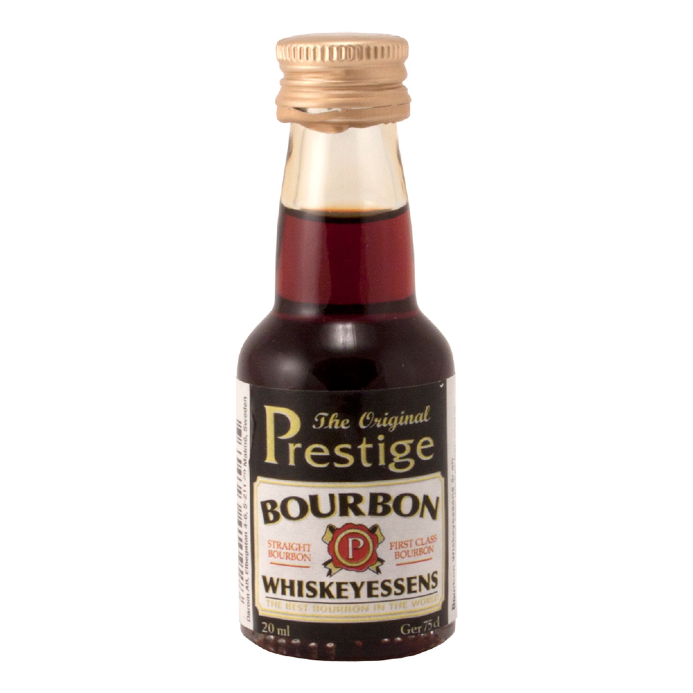 Prestige Bourbon Whiskey Essens säljs i flaska om 20 ml, vilket räcker till 75 cl brännvin.