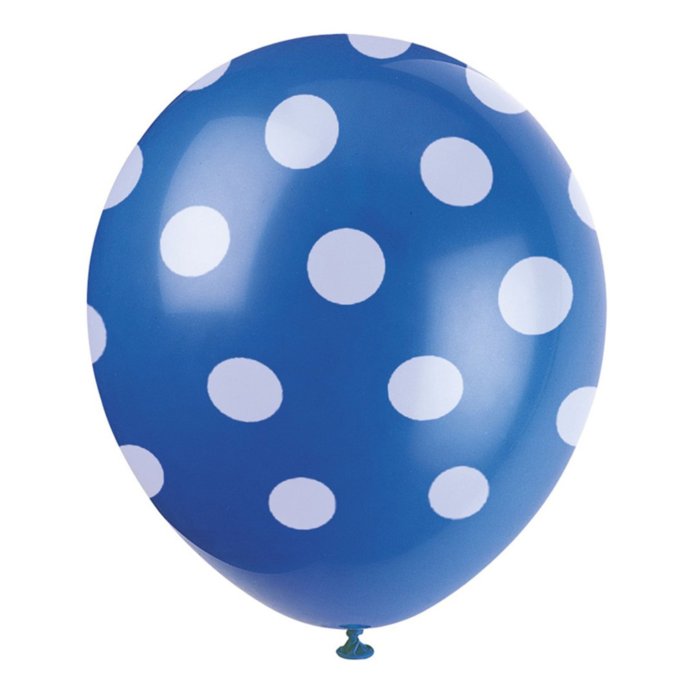 Blåa runda ballonger med ljusa prickar av hög kvalitet. Passar perfekt att dekorera temafesten eller kalaset med för en ännu festligare stämning.