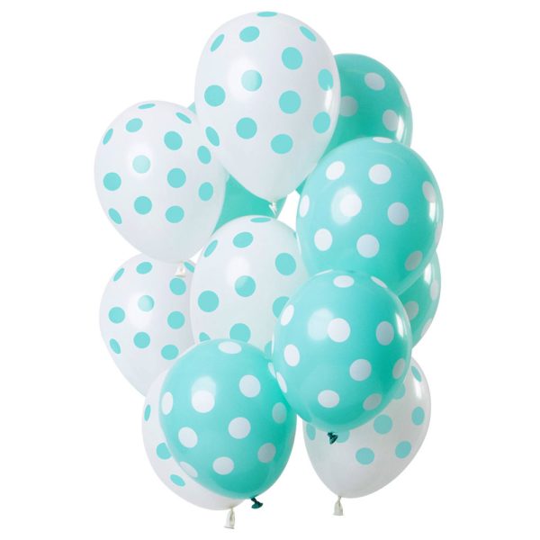 Gulligt prickiga ballonger i snyggt vitt och mintgrönt som gör det enkelt att få till en härlig kalasstämning! Med dessa latexballonger kan du alltså på bara ett litet ögonblick skapa en fantastisk ballongdekoration att utsmycka firandet med. Riktigt fina kalas ballonger som blir en utmärkt fest dekoration till de flesta firanden, men de passar lite extra bra till exempelvis barnkalas, baby shower och liknande.