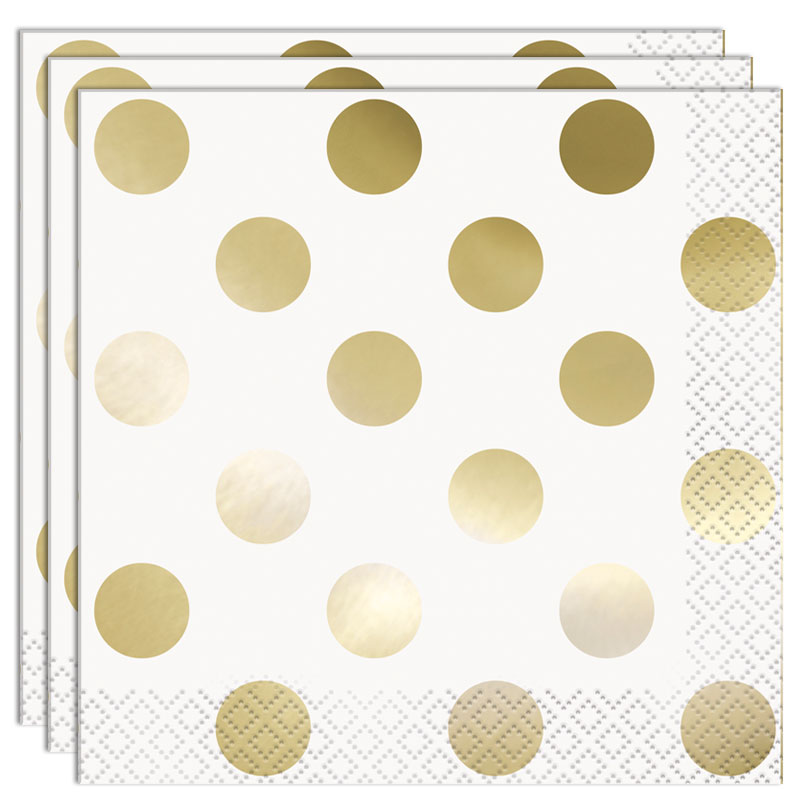Kaffeservetter är ett utmärkt tillbehör för alla typer av fester, kalas och firanden i guld. Dessa vita servetter med guld prickar kan enkelt liva upp ditt kalas eller din nyårsdukning. Slipp kladdiga fingrar och smutsigt bord med dessa super snygga kaffeservetter intill varje gäst.