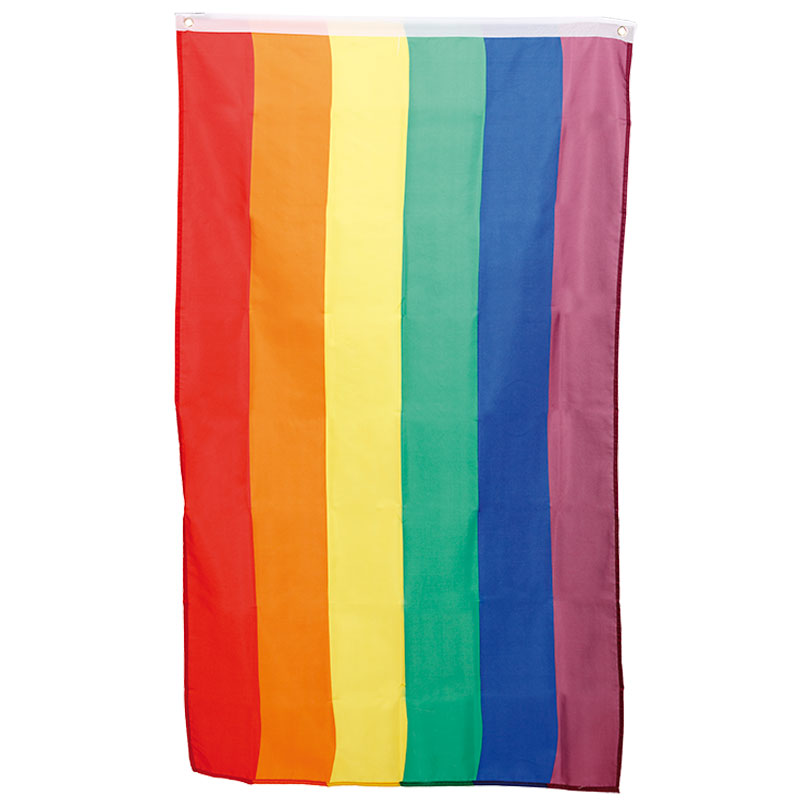 Prideflagga 60x90cm omfattar en regnbågsfärgad prideflagga med två stora öglor i varje hörn för enkel upphängning. Flaggan är ca 60 cm hög och 90 cm bred.