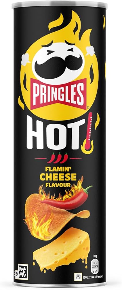 Pringles Hot Flamin Cheese Flavour är ett måste för alla som älskar ost och hetta! Dessa krispiga potatischips är fyllda med en ostig smak och en eldig hetta som ger en perfekt balans mellan kryddig och krämig. Perfekta att dela med vänner eller njuta av på egen hand – de här chipsen levererar en smakexplosion som får smaklökarna att dansa!