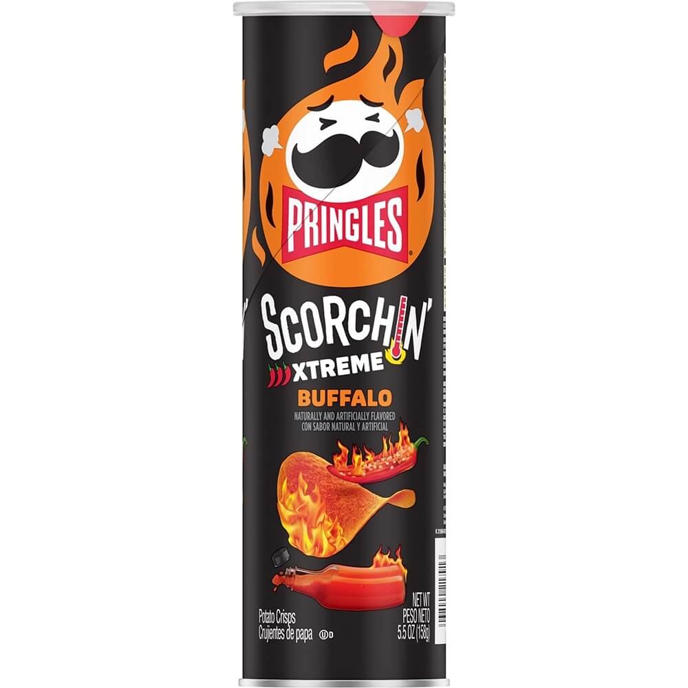 Pringles Scorchin Xtreme Buffalo tar hetta till en ny nivå med sina intensivt kryddade chips. Dessa potatischips erbjuder en djärv och brännande smak av buffalo med en extra skvätt hetta. Perfekta för de som söker en extremt kryddig och smakrik snacksupplevelse.