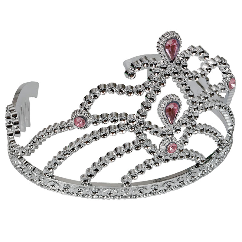 Prinsesstiara Rosa Diamanter består av en söt tiara i silver med dekorativa diamanter i ljusrosa. Tiaran är tillverkad i plast.