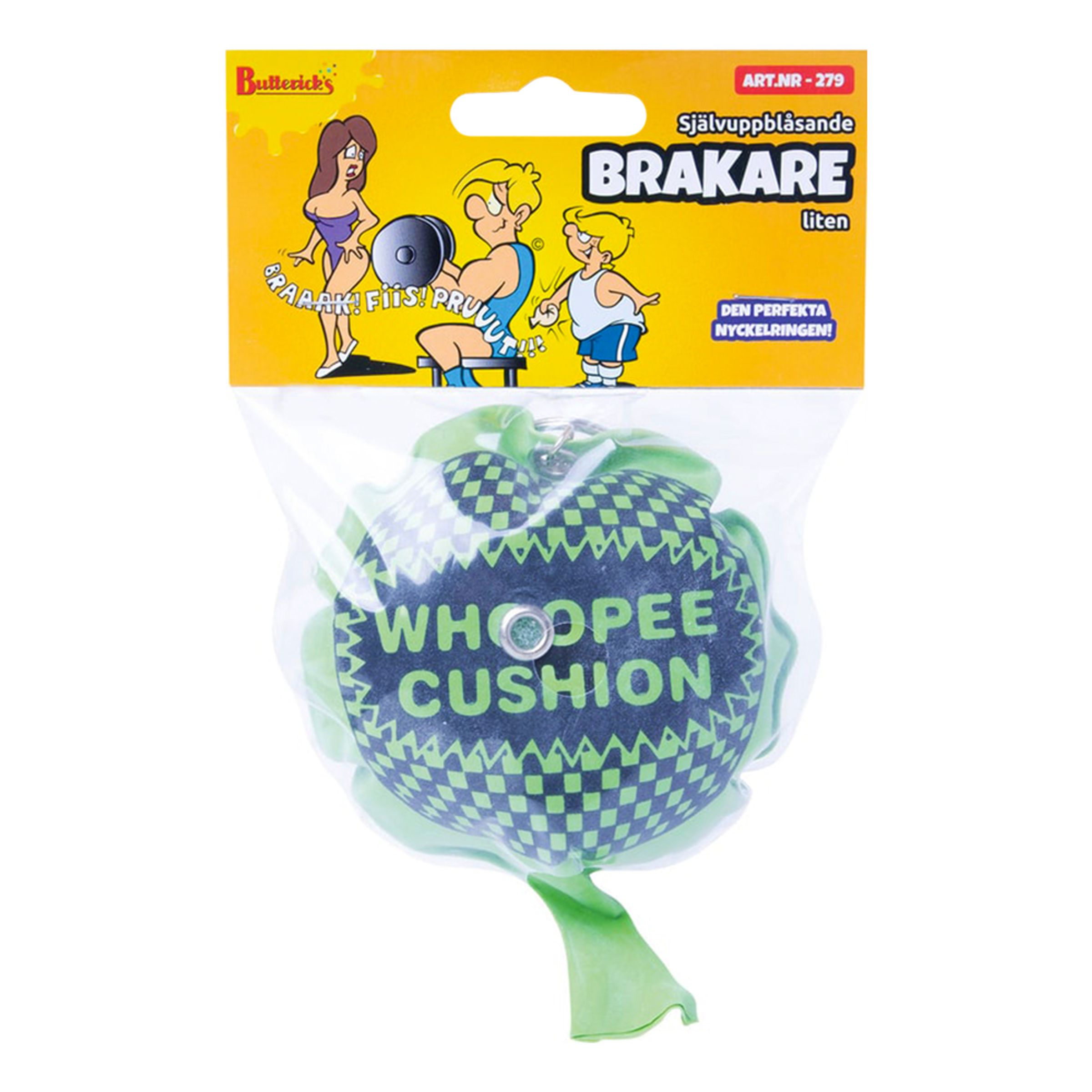 Pruttkudde på Nyckelring är den klassiska pruttkudden helt enkelt. Denna är i ett lite mindre format och fäst på en nyckelring för att alltid finnas tillgänglig.