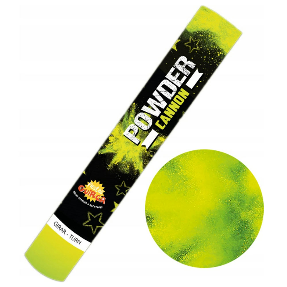 En pulverkanonen i gul är den perfekta produkten för dig som vill skapa en explosion av färg på festen. Med pulverkanon skjuts gult pulver ut i luften, vilket ger en fantastisk visuell effekt och imponerar på alla.