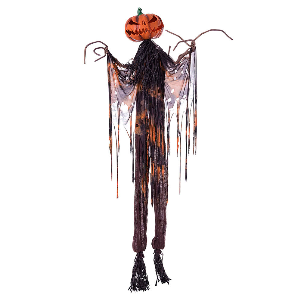 Pumpaman med Ljus omfattar en halloween prop som föreställer en läskig pumpaman med ljuseffekt. Dekorationen drivs av 3 st AA-batterier och är ca 185 cm lång. Tillverkad av plast och pvc-tyg.