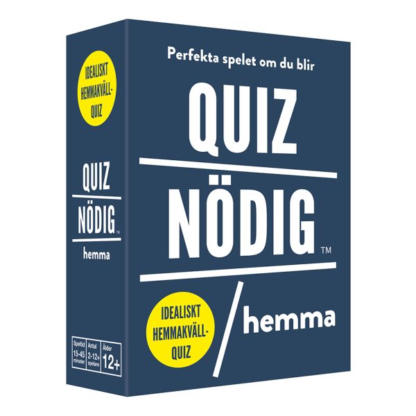 Quiznödig Hemma Frågespel är ett spel med lagomt svåra frågor som lämpar sig för olika åldrar. Lätt att ta med sig på t.ex. resan, middagen eller förfesten.
