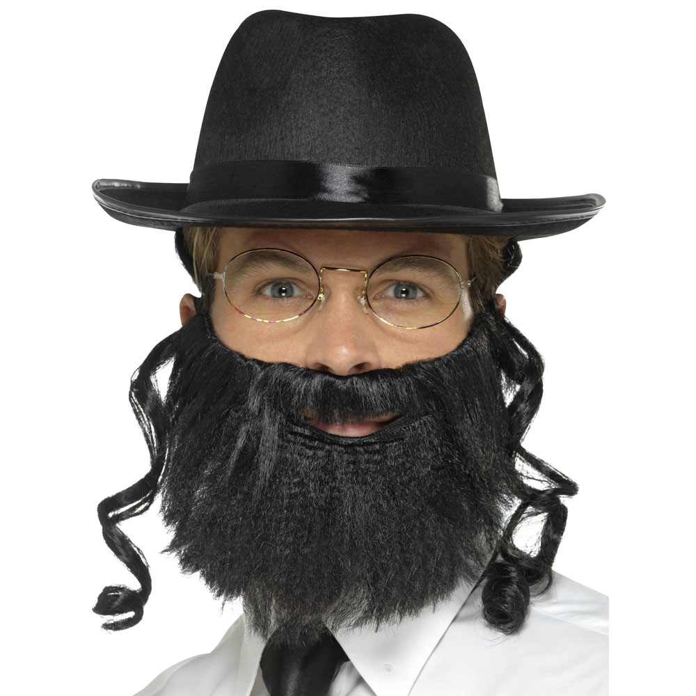 Ska du till en bar eller uträtta ett bröllop och hade en olycka med rakhyveln imorse? Då är denna svarta hatt med rabbi skägg och polisonger den perfekta akutlösningen. Även om den är smått okänslig så kan det absolut vara en rolig maskerad dräkt i rätta sammanhang.