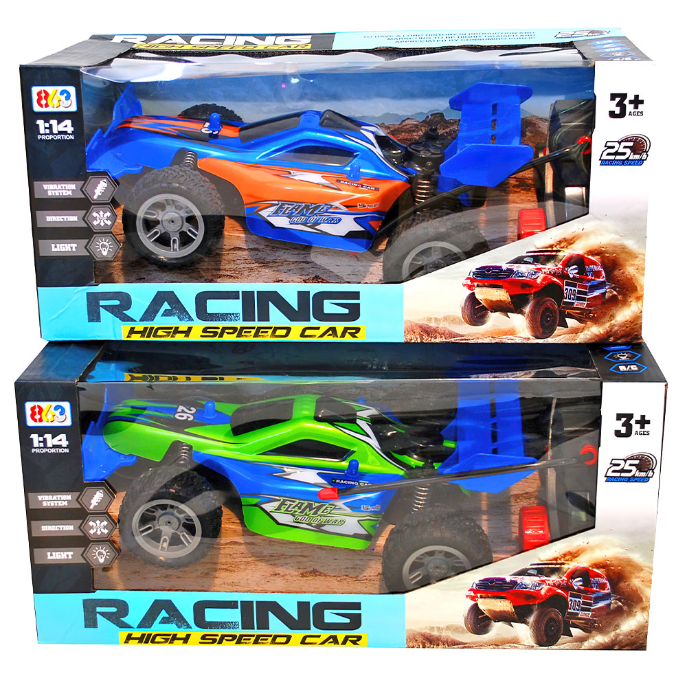 Kör fort fram på vägarna med denna tuffa rc bil! Riktigt häftig radiostyrd leksaks-bil som kommer upp i hela 25 km/h, vilket gör den till en perfekt leksak för alla som gillar höga hastigheter och racing. En superrolig radiostyrd bil som bjuder på riktigt snabba race!