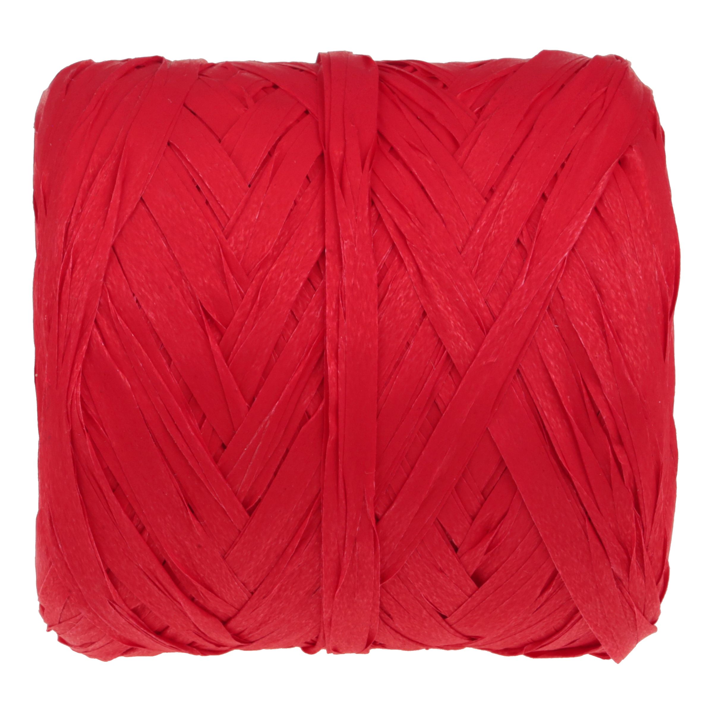 Raffiaband Röd är tillverkat av raffia och har en röd färg. Det består av tunna, lätt fransiga remsor som är flätade ihop till en kompakt rulle.