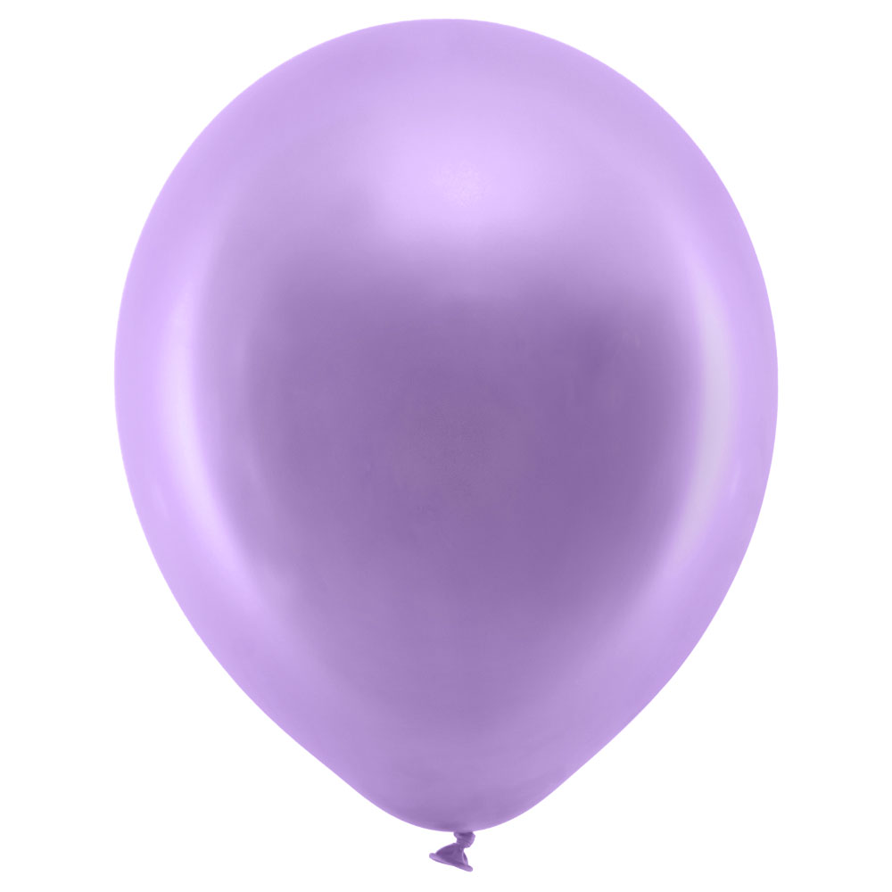 Rainbow Latexballonger Metallic Violett omfattar 10 stycken metallic latexballonger i violett-lila. Ballongerna fylls med luft eller helium och mäter ca 30 cm i diameter.