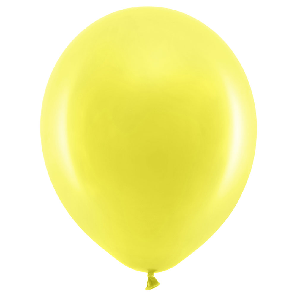 Rainbow Latexballonger Pastell Gula omfattar 10 stycken pastellgula latexballonger som mäter ca 30 cm i diameter. Blås upp ballongerna med luft eller helium.