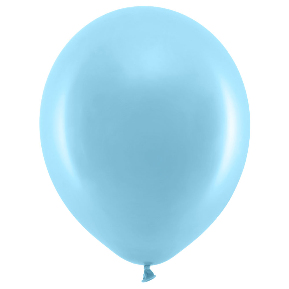 Rainbow Latexballonger Pastell Ljusblåa omfattar 10 stycken pastell ljusblåa latexballonger som mäter ca 30 cm i diameter. Blås upp ballongerna med luft eller helium.