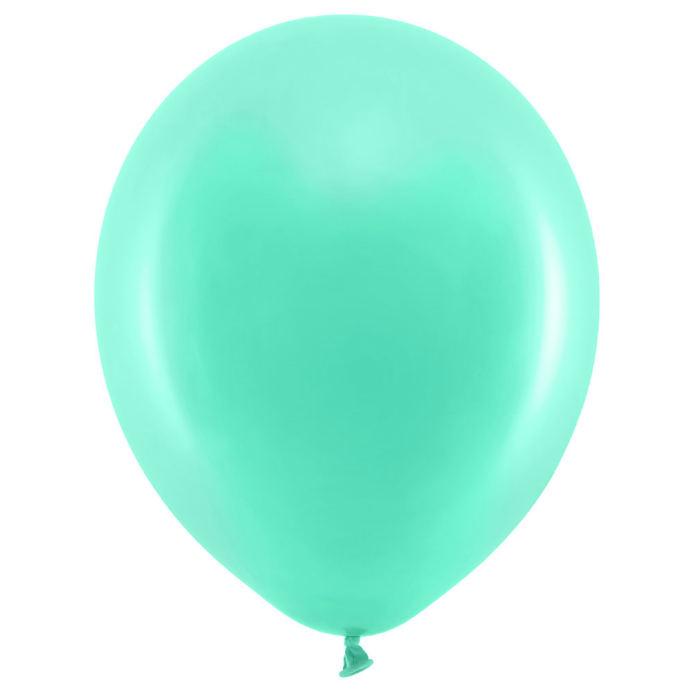 Rainbow Latexballonger Pastell Mintgröna omfattar 10 stycken pastell mintgröna latexballonger som mäter ca 30 cm i diameter. Blås upp ballongerna med luft eller helium.