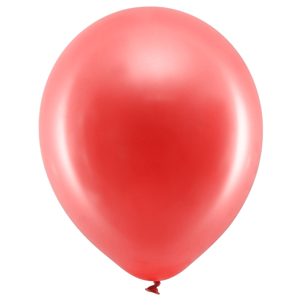 Rainbow Små Latexballonger Metallic Röda omfattar 10 stycken metallic röda latexballonger som mäter ca 23 cm i diameter. Blås upp ballongerna med luft eller helium.