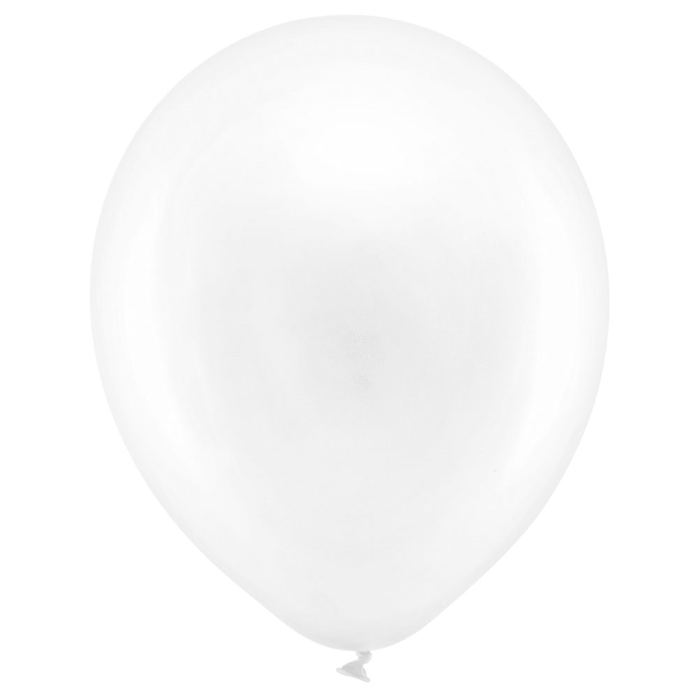 Rainbow Små Latexballonger Metallic Vita omfattar 10 stycken metallic latexballonger i vitt. Ballongerna mäter ca 23 cm i diameter och fylls med luft eller helium.
