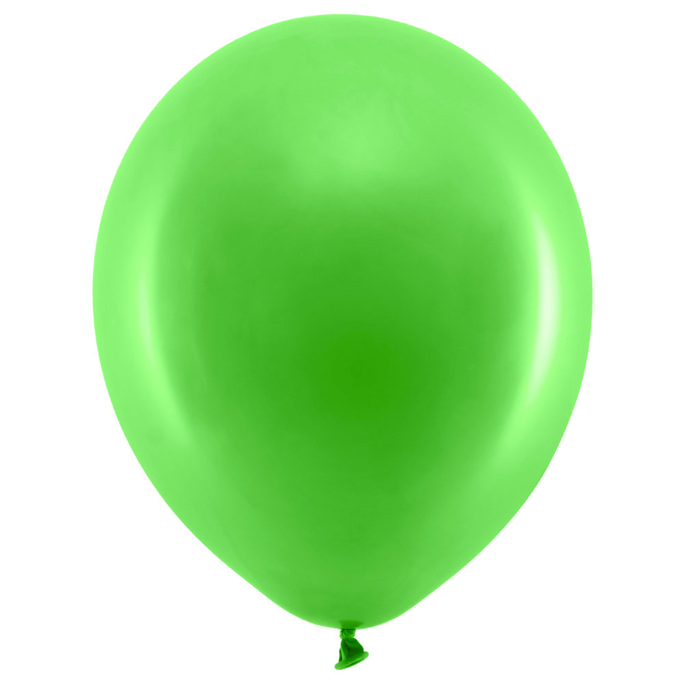 Rainbow Små Latexballonger Pastell Gröna omfattar 10 stycken pastell gröna latexballonger som mäter ca 23 cm i diameter. Blås upp ballongerna med luft eller helium.