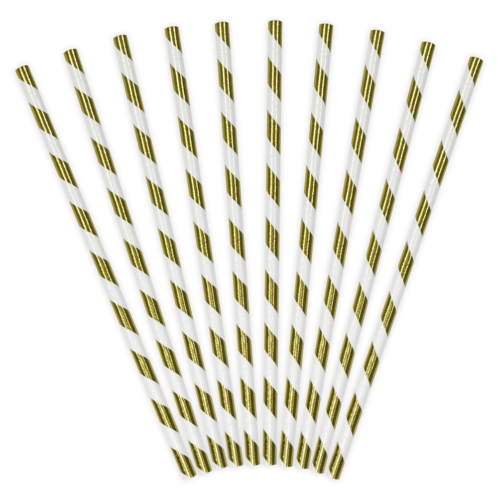 Styla dina kalasdrinkar med dessa läckra papperssugrör i snyggt vitt och guld! Fina sugrör av papper som blir ett utmärkt tillbehör till exempelvis en smarrig kalas-buffé, ett barnkalas eller en snygg fest dukning i guld.