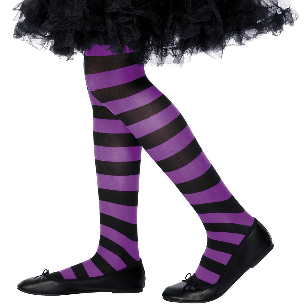 Randiga strumpbyxor skapar många olika möjligheter! Dessa randiga strumpbyxor för barn i svart och lila är ett utmärkt maskeradtillbehör till förslagsvis en häxutklädnad eller liknande. Lika snygga till maskerader som till vardags.