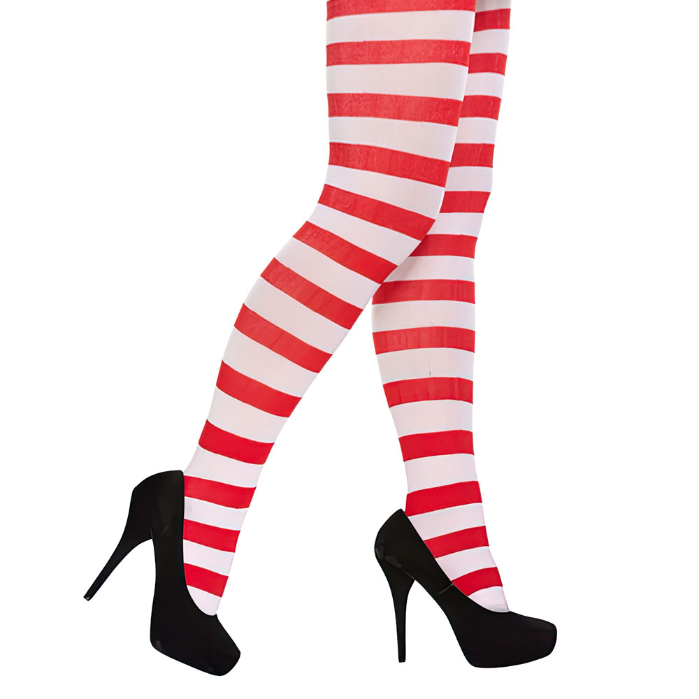 Tjusigt randiga strumpbyxor som blir perfekt till julklädseln! Med röda och vita ränder passar de här strumpbyxorna lika bra till en fin julklädsel som till en festlig tomteklänning. Helt enkelt utmärkta randiga tights för alla som önskar en riktigt julig look!