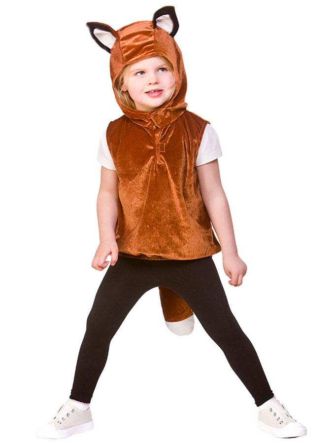 Bli en söt liten räv med denna super fina räv maskeraddräkten för barn! Denna rävdräkt är en enkel med mycket effektfull räv utklädnad som består av en söt väst med räv öron och räv svans. En utmärkt utklädnad för barnet som gillar rävar och ska på djur maskerad.
