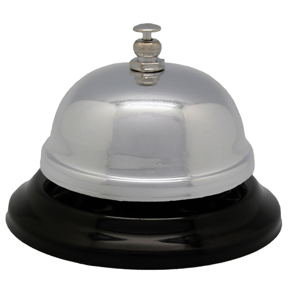 Receptionsklocka omfattar en pling klocka i metall som går att använda till många olika saker.