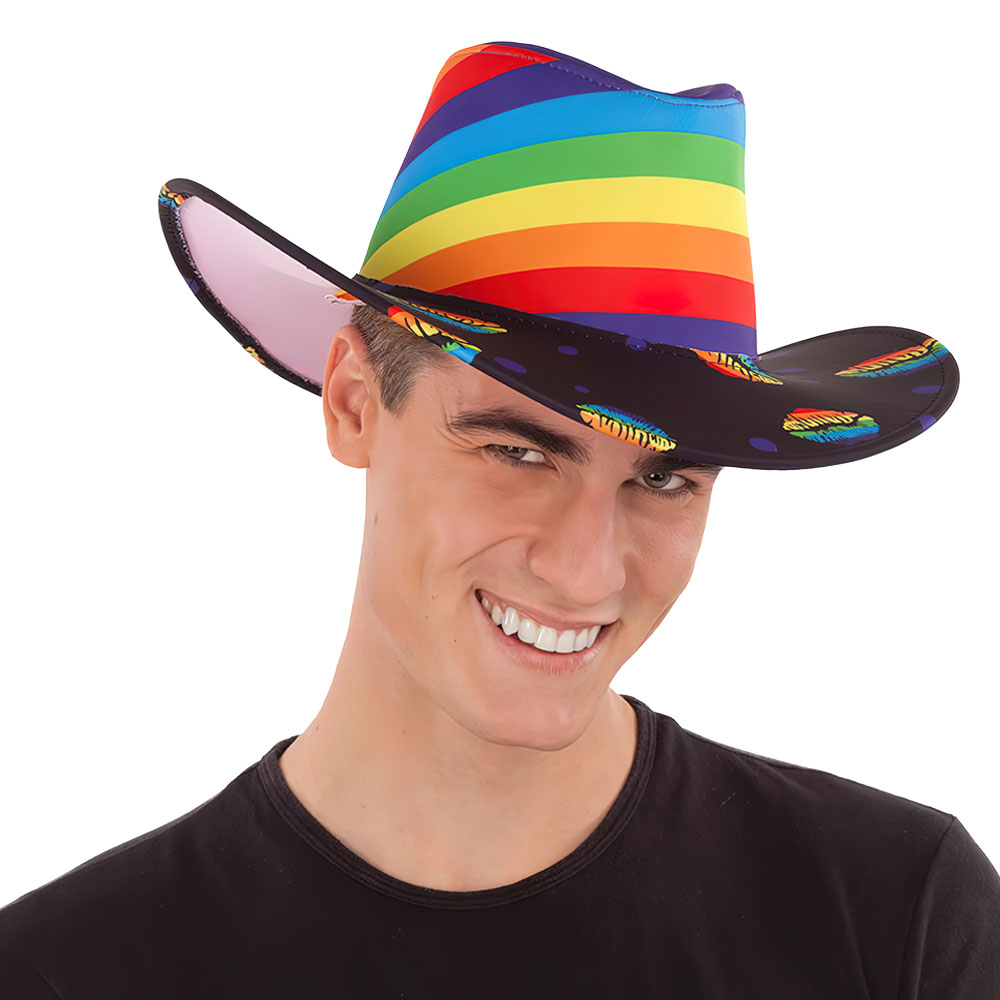När man ska ut i den australiensiska vildmarken gäller det att ha den rätta looken, och det kommer du tveklöst att få med denna häftiga hatt! Rolig maskeradhatt i australiensisk modell med snygga regnbågsfärgade ränder och pussmunsmotiv, vilket helt klart får dig att se riktigt bra ut. Utmärkt regnbågshatt för alla färgglada maskerad utklädnader!