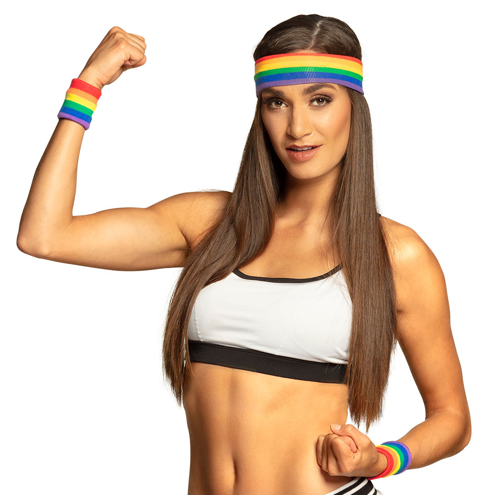 Torka svetten med stil med dessa häftiga svettband! Super snygga svettband med ränder i regnbågens alla färger som blir ett häftigt maskeradtillbehör till den utklädda festen, en cool accessoar till det stora pride firandet och en färgglatt tillbehör till det svettiga träningspasset. Helt enkelt de ultimata svettbanden för dig som vill klä dig i super härliga färger!