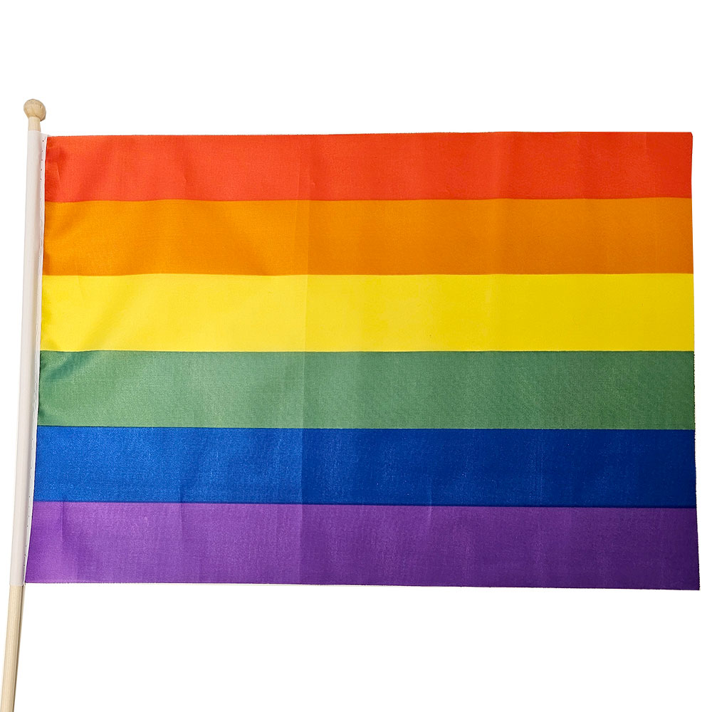 Regnbågsflagga på Träpinne