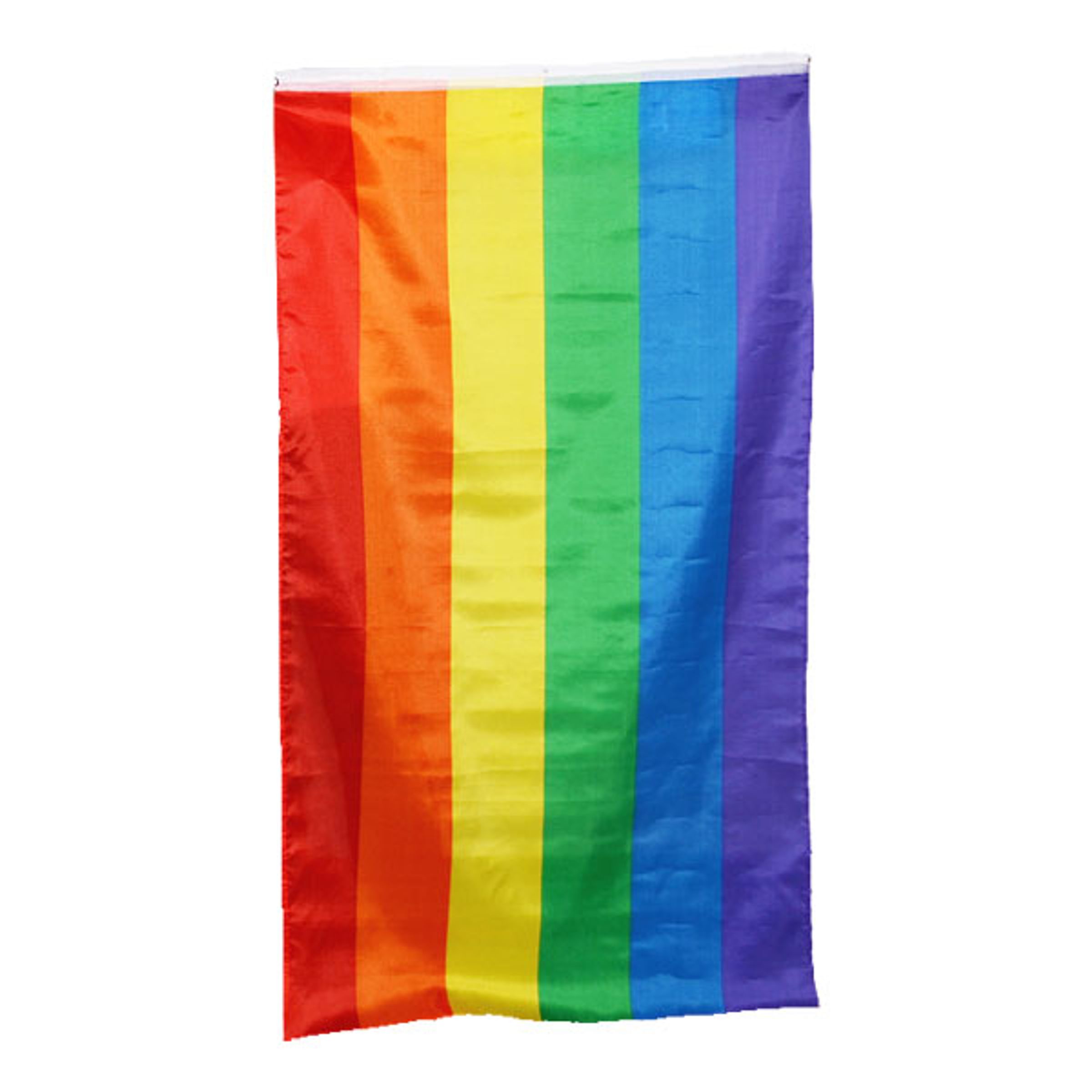 Prideflagga med Öljetter är tryckt med genomfärgat tryck och är förstärkt runtom med dubbla rader stygn. På ena kortsidan finns 2 st metallöljetter för enkel upphängning. Material: Polyester. Tvättråd: 30 grader. Får ej torktumlas.