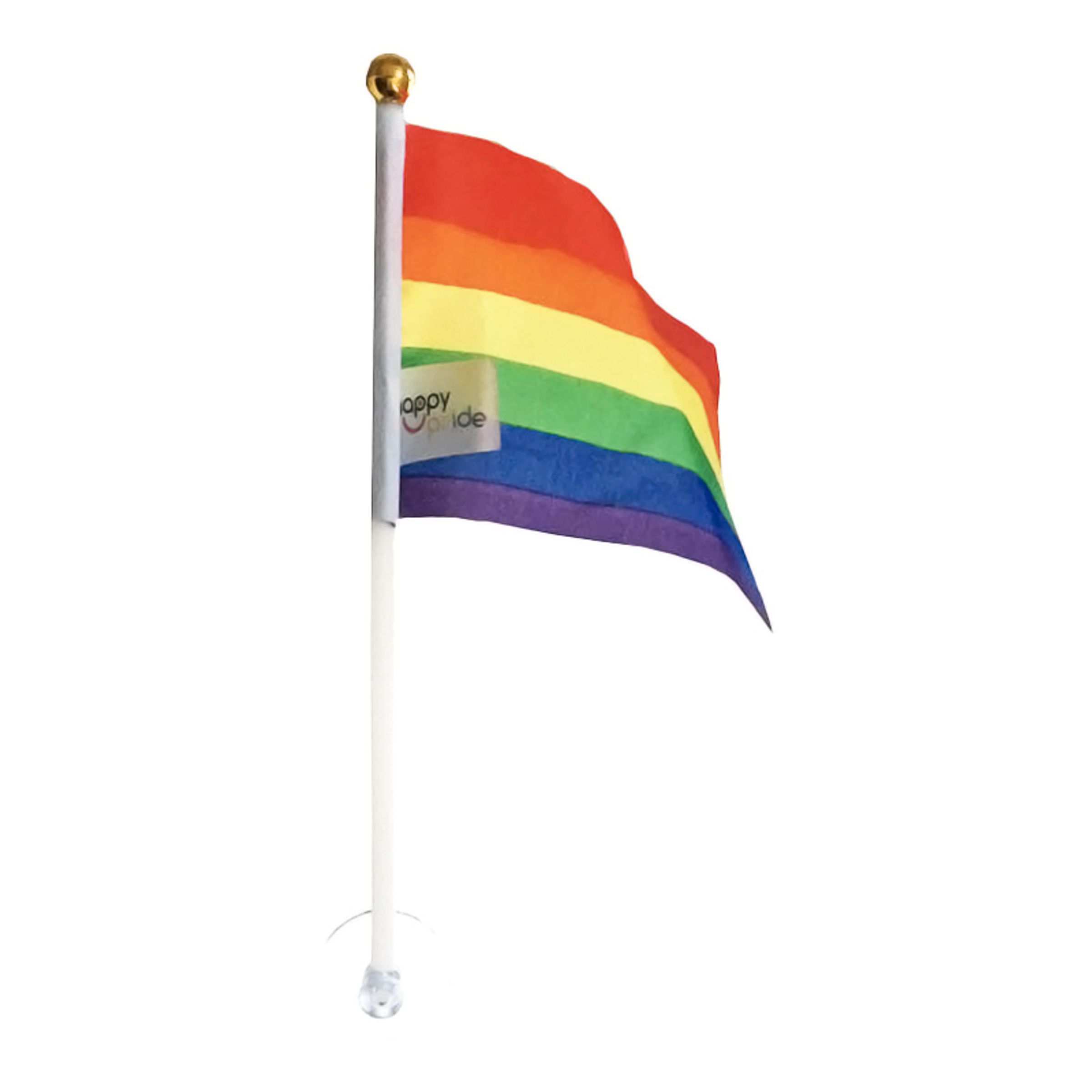 Pimpa bilen med dessa härliga prideflaggor! Flaggorna fästes enkelt på utsidan av din bil med praktiska sugproppar, så det är bara att plocka bort flaggorna när du tröttnat på dem (men det gör du väl knappast!). Perfekt när du vill smycka ut bilen med något färgglatt eller varför inte brumma runt i stan med bilflaggorna när det vankas Prideparad.