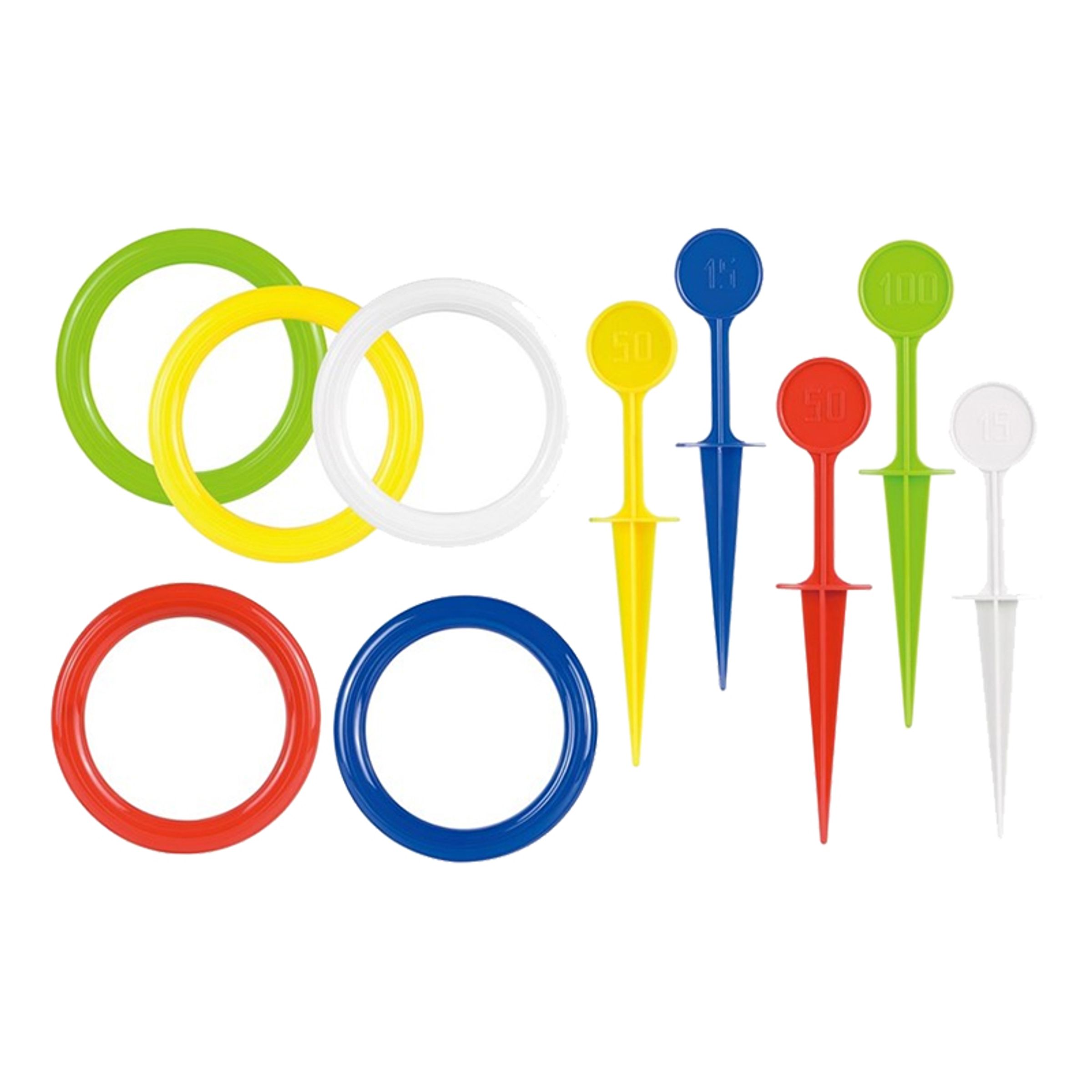 Ring Game inkluderar fem ringar och fem pinnar i olika färger som du enkelt sätter ner i marken. Sätt gärna pinnarna på olika avstånd och försök sedan att kasta iväg ringarna över pinnarna. Spelet uppskattas av både vuxna och barn och passar från tre år.
