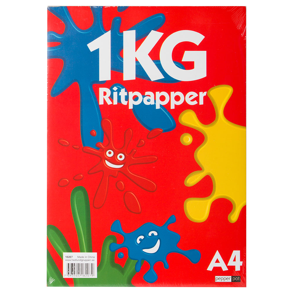 Ritblock A4 omfattar ett tjockt ritblock i A4 format med blanka papper och en limmad överkant. Blocket väger 1 kg.