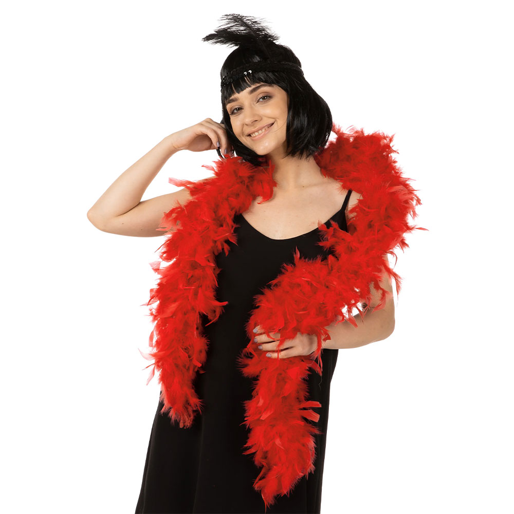 Röd Fjäderboa omfattar en maskeradboa med röda fjädrar. Fjäderboan är ca 180 cm lång och väger ca 45 gram.