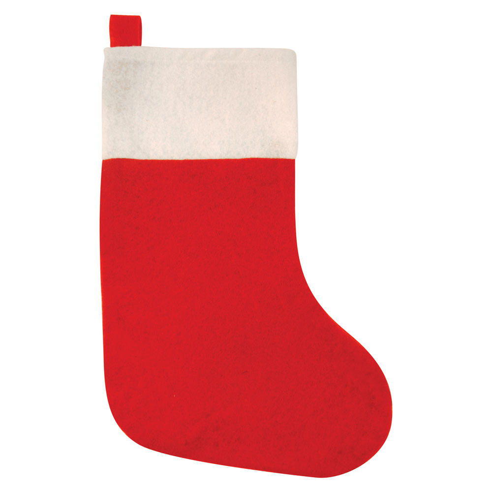 Röd Julstrumpa består av en röd julstrumpa med vit kant samt en liten röd ögla att hänga upp den i. Tillverkad av filt-material.