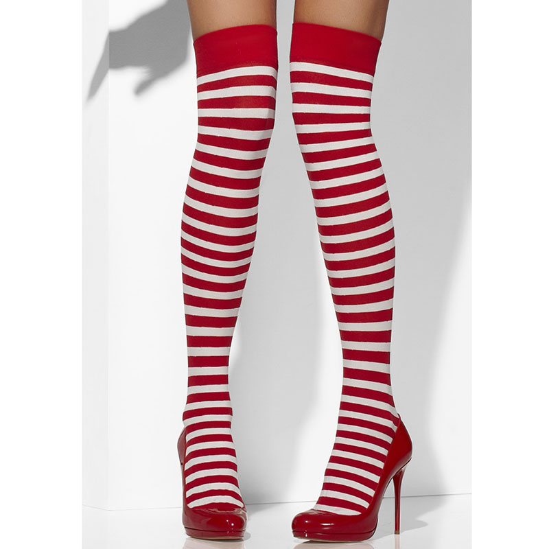 Gör din outfit extra passande inför julfesten med ett par superläckra randiga knästrumpor i färgerna röd och vit!