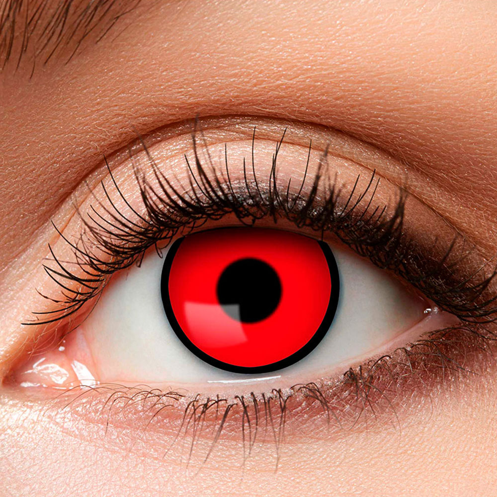 Röda färgade halloween linser som förvandlar dina ögon till röda monsterögon. Med dessa färgade linser utan styrka kan du alltså enkelt höja hela din halloween utklädnad. Riktigt häftiga röda linser som passar alldeles utmärkt till många olika halloween dräkter.