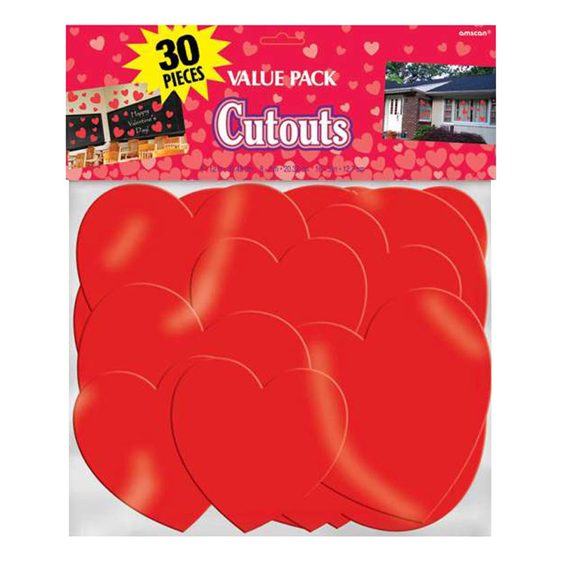 Röda Hjärtan Pappersdekorationer omfattar ett 30-pack röda hjärtdekorationer i tre olika storlekar. Dekorationerna är tillverkade av papp och är ca 12,7 – 29,2 cm stora.