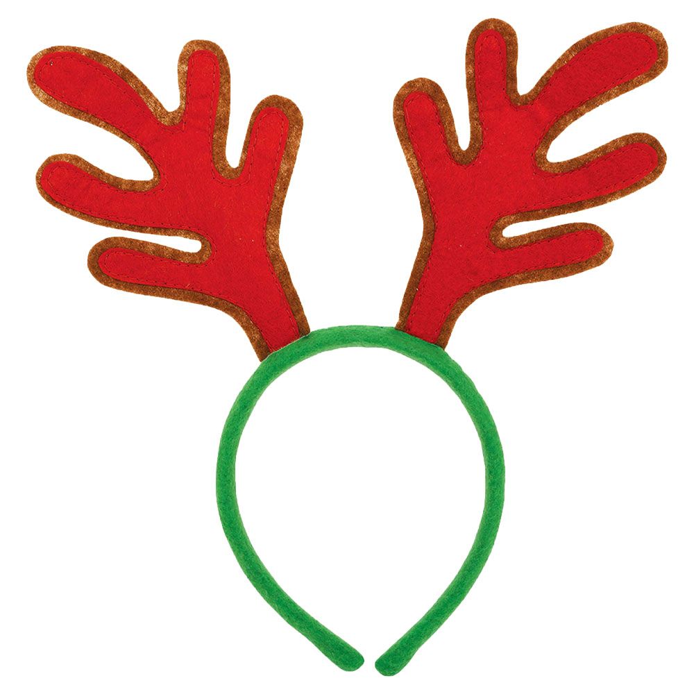 Fint och roligt jul-diadem med röda renhorn och grönt diadem, perfekt för dig som vill ha en skojig utklädnad som renen Rudolf eller kanske hans kusin. Med utstickande röda horn blir detta juliga diadem ett säkert kort för en helkul jul-klädsel.