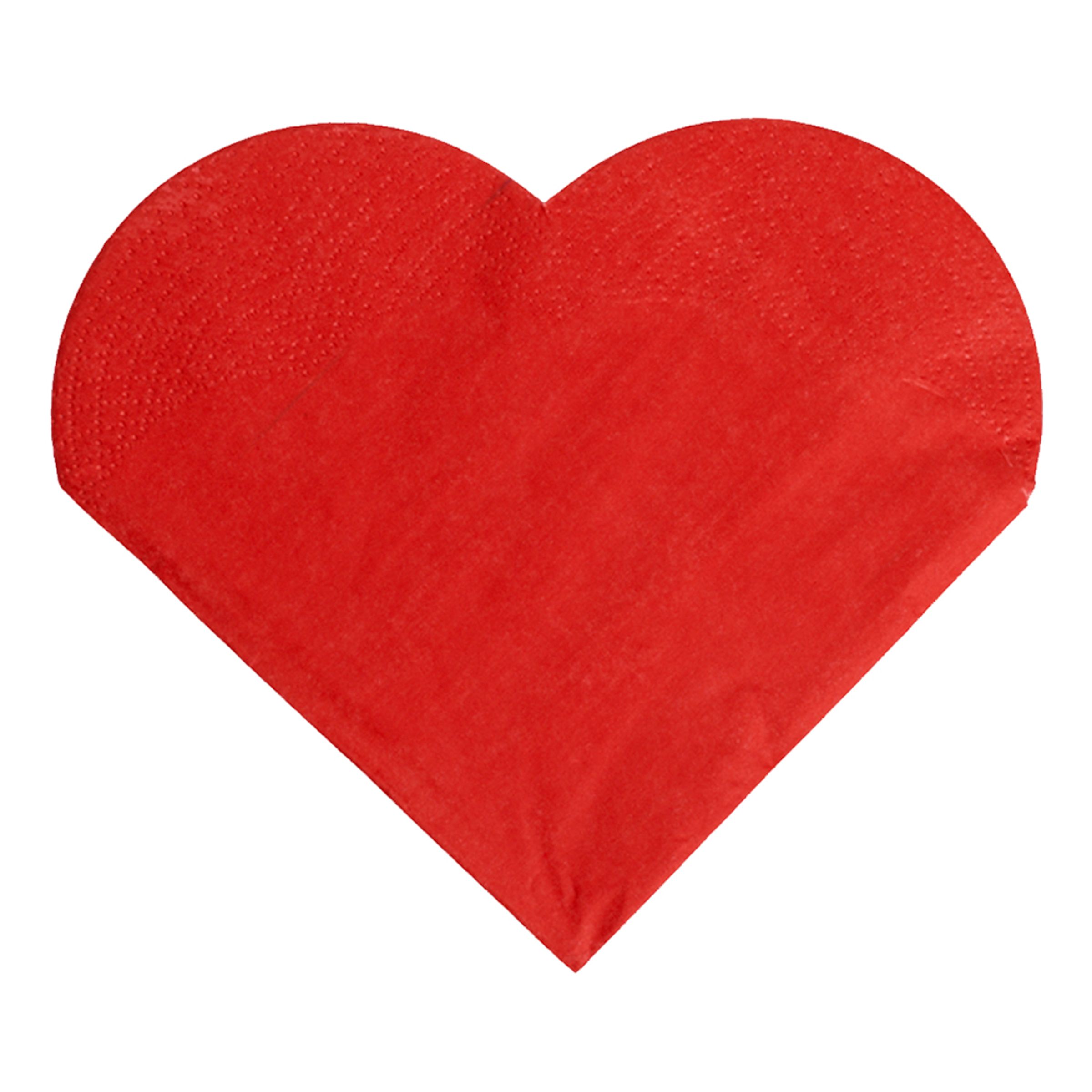 Röda Servetter Hjärtformade inkluderar tolv stycken servetter formade som röda hjärtan. Servetterna består av tre lager.