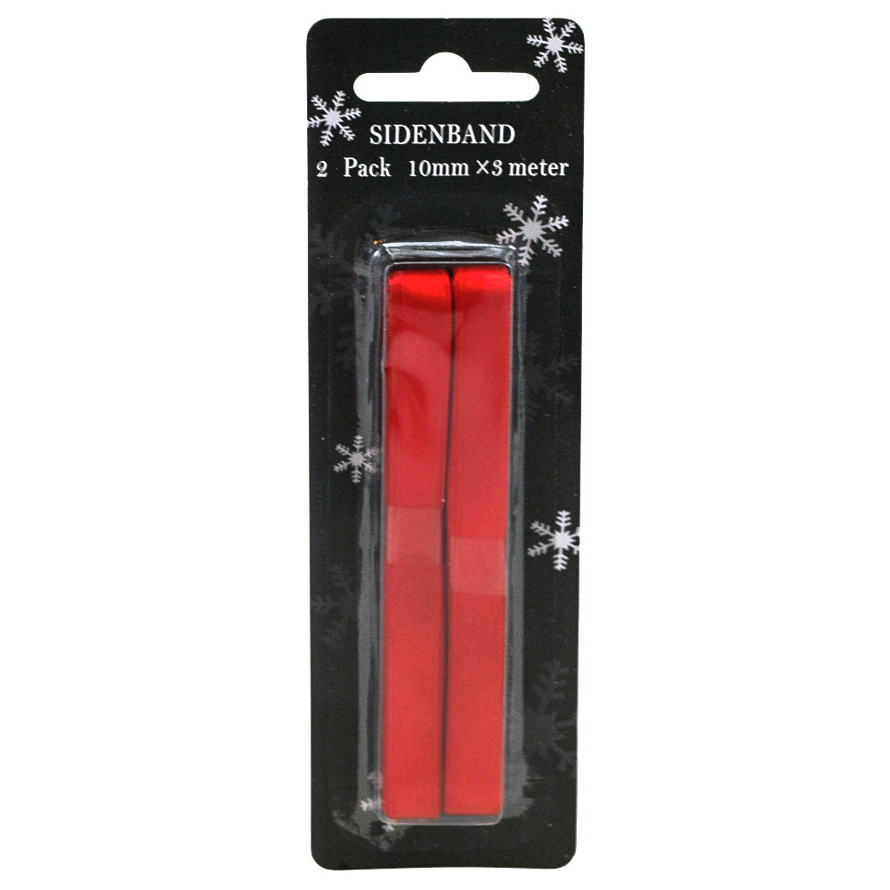 Röda Sidenband 2-pack omfattar två stycken sidenband i rött som är 10 mm breda och 3 meter långa.