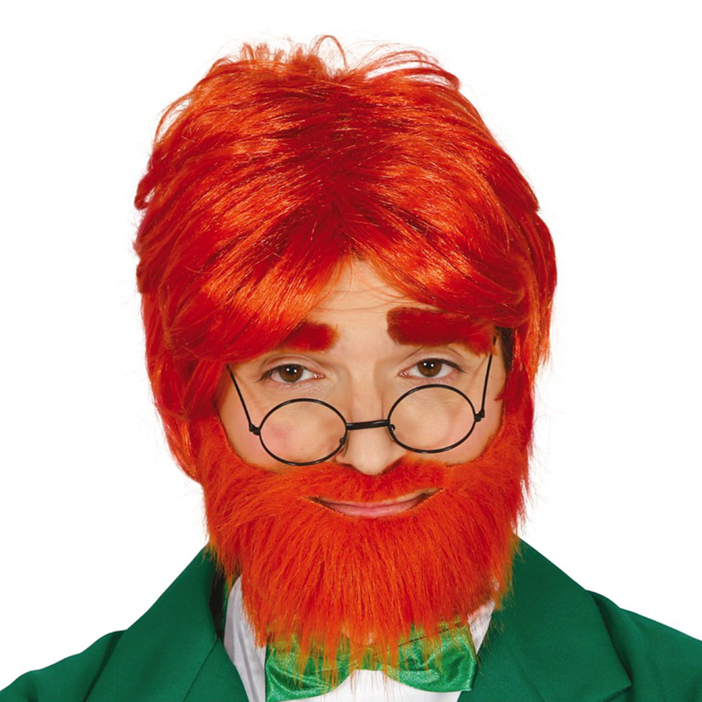 Rödhårig Peruk med Skägg är en röd peruk med matchande skägg. Skägget sitter på plats med hjälp av elastiskt band bakom ditt huvud och har en öppning för munnen. Passar perfekt till festen med landstema och halloweenfesten – eller när du bara vill prova på att ha rött hår!