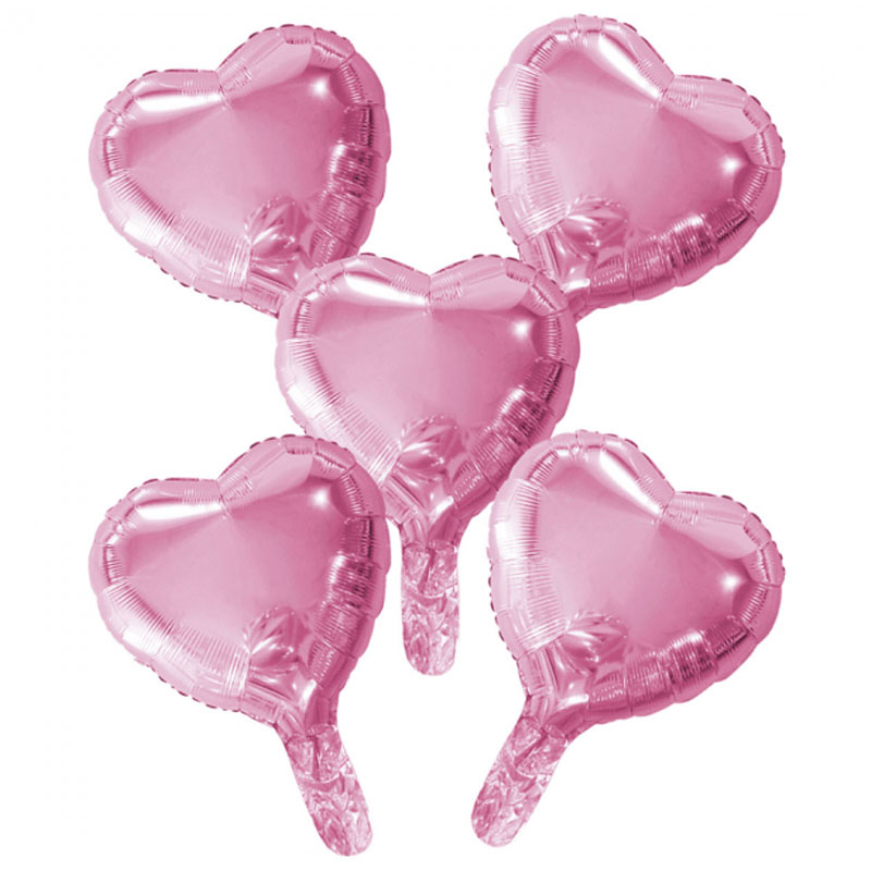 Rosa Hjärtballonger 5-pack består av ett 5-pack rosa hjärtballonger av folie, samt ett papp-rör som gör det lätt att blåsa upp dem. Ballongerna är självförslutande och ska endast fyllas med luft. Mått: 23 x 23 cm. Säljs i 5-pack.